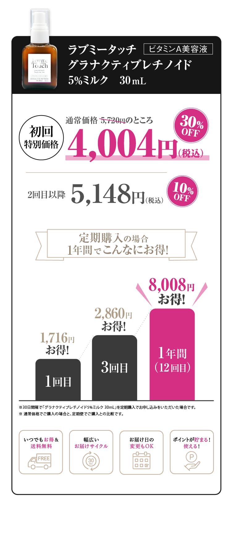 | 商品名 | ラブミータッチ グラナクティブレチノイド5%ミルク |