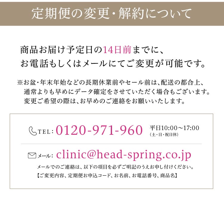 - A. はい。カートからは再申し込みいただけないため、お手数ですが、問い合わせフォームまたはお電話からお問い合わせくださいませ。解約後の再申し込みは特別価格が適用されません。2回目以降の価格でのお申し込みとなります。