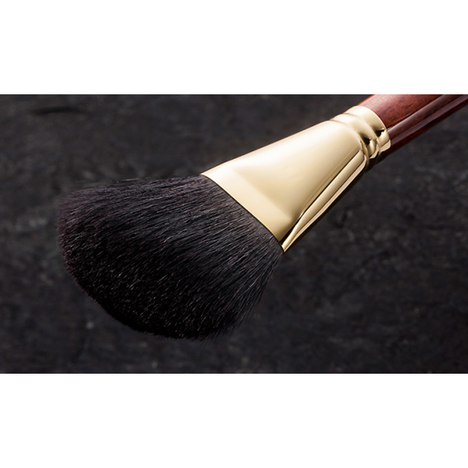 | 特徴 | 毛丈が長く、穂先の厚みを薄くする事でコシを柔らかくしながらも粉含みや発色は大変良く、優しいふんわりとした肌当たりが楽しめます。お顔全体と、デコルテや背中にもご使用できます。余分なお粉落としにも最適です。 |