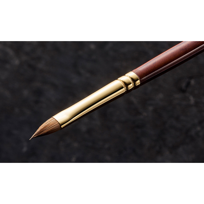 | 概要 | ■全長 全長 : 142 (mm) ■毛 毛丈 : 11 (mm) 毛の幅×厚み : 5.5×3 (mm) ■素材 毛材 : コリンスキー 金具 : 真鍮(24金メッキ) ハンドル : アフリカンローズウッド(ブビンガ) |