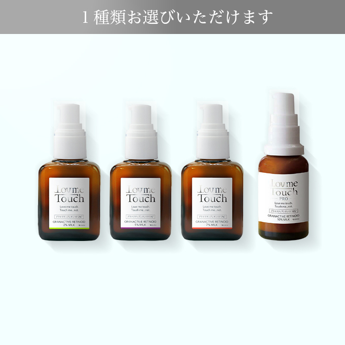 ※各本品ページに飛びます。 ●ラブミータッチ LA PEEL(エルエー ピール)シリーズ 1本 ※以下からお選びいただけます。 ・LA PEEL5 30mL ・LA PEEL10 30mL ●ラブミータッチ NAシリーズ 1本 ※以下からお選びいただけます。 ・NA10 30mL ・NA12 リッチ 30mL ●ラブミータッチ グラナクティブレチノイドシリーズ 1本 ※以下からお選びいただけます。 ※グラナクティブレチノイド10%ミルクはカウンセリングを受けた方のみ購入できます。 ・グラナクティブレチノイド2%ミルク 30mL ・グラナクティブレチノイド5%ミルク 30mL ・グラナクティブレチノイド7%ミルク 30mL ・(ラブミータッチプロ)グラナクティブレチノイド10%ミルク 30mL |